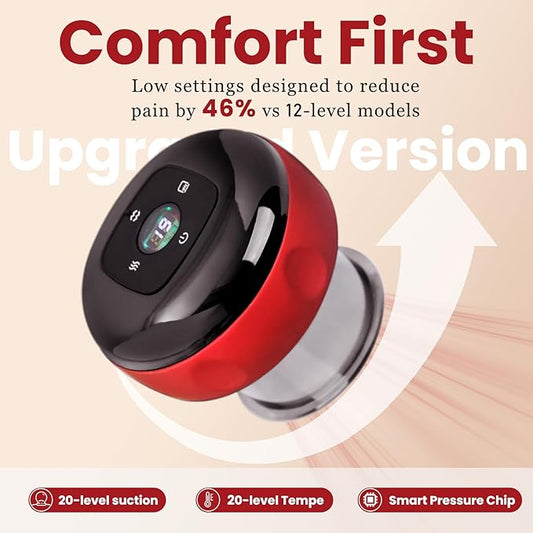 5-in-1 Dynamic Cupping Kit 20-Level Heat & Suction Red Light Back Pain Relief (Black)