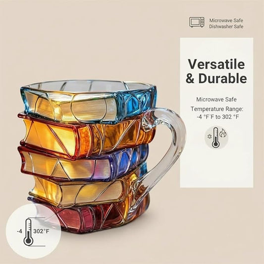 3D Book-Shaped Coffee Mug (11oz) – New Handmade Stained Glass Chapter Mug | Novelty Gift for Book Lovers, Readers & Librarians