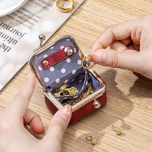 Genuine Leather Mini Jewelry Box, Portable Vintage-Inspired Genuine Leather Coin Purse Jewelry Case with Kiss Lock, Mini Travel Ring Box for Women for Earring/Ring/Necklace/Bracelet(Black)