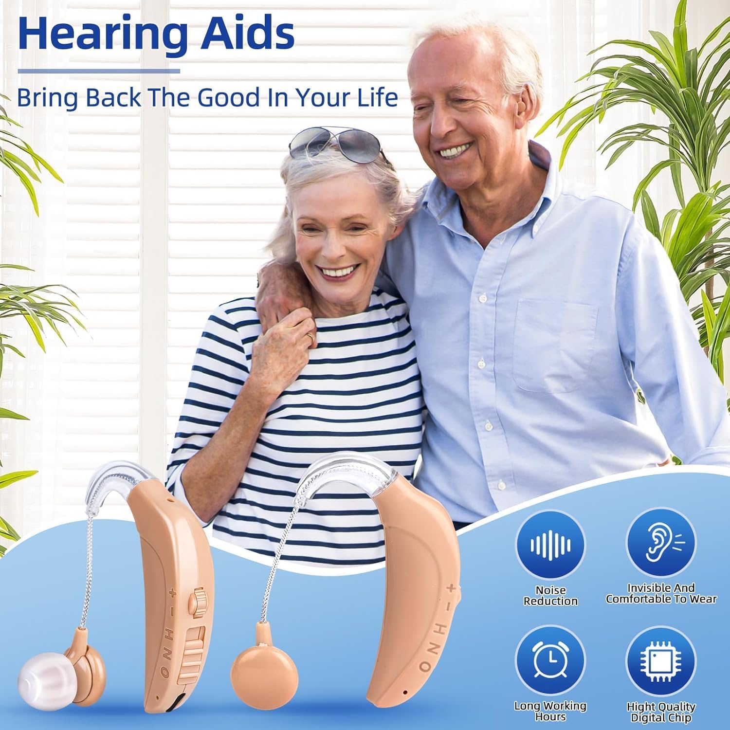 - 【Improve Hearing】: This hearing amplifier for severe hearing loss uses advanced digital technology, which can enhance the sound quality very well. Behind-the-ear hearing amplifier have intelligent noise reduction technology, which allows you to differentiate between different sounds to cope with different environments.